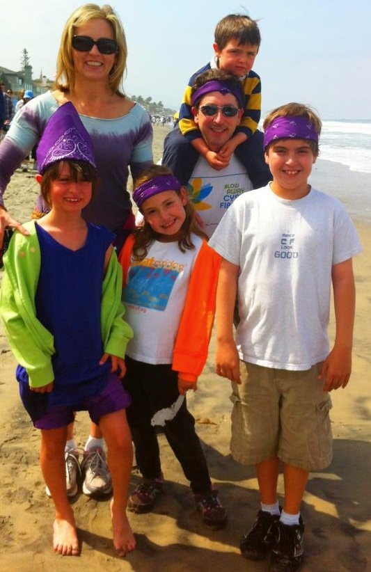 My Schedule…and a Little Extra: We already gave and we already helped to raise money for research, but there is something deeply gratifying about going to the event itself with hundreds of others and simply walking along the beach for a cause you believe in. On Sunday my family participated in the Cystic Fibrosis Great Strides Walk. Our good friends and neighbors have two spirited kids with Cystic Fibrosis (shown in the picture to the left). The Walk is hopeful and sad at the same time. A few participate in remembrance of their children who lost the battle…evidenced by a sign they hold up as they walk. And many are there with children who are presently soldiers in the battle, like our courageous neighbor friends. And some are there in support of friends, like us, in the hopes that someday a cure will be discovered. If you care to donate, even $5, I would be ever so grateful. In the picture, my wife with daughter in front of her, me and my son on my shoulders, and our two neighbor friends mentioned above. To read a previous story by my wife, The Travel Mama, click here.