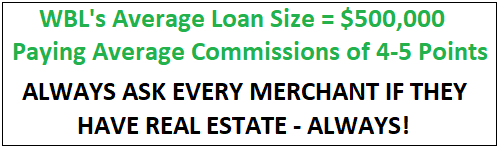 SO THIS IS WHAT YOU DO…get the Merchant an MCA loan now for whatever loan amount you can get approved, AND SIMULTANEOUSLY, submit to WBL for a much larger loan amount. Your Merchant will be happy because they’ll get some funds quickly and in just a few weeks they’ll get a whole lot more…WIN-WIN!  In the meantime, you’ll earn a commission on the MCA loan quickly and another commission from WBL when our loan closes.  HERE’S WHAT I NEED YOU TO DO: