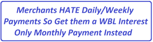 Merchants HATE weekly and daily payments. WBL makes interest only monthly payment loans. I advise you contact your past clients and ask them if they need more capital, and while you’re at it, be sure to find out if they have real estate to pledge as collateral. If they do, we can consolidate their MCA loans and get them out of daily or weekly payments.