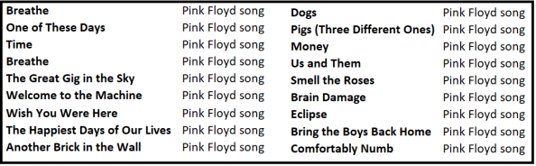 I went to see Roger Waters in concert. In college I considered Pink Floyd more of a religion than a band so you can imagine how excited I was. I saw Pink Floyd in Milwaukee in 1987 but Roger Waters wasn’t touring with the band so this is my first time seeing him perform. He did not disappoint. Here’s the song line-up:
